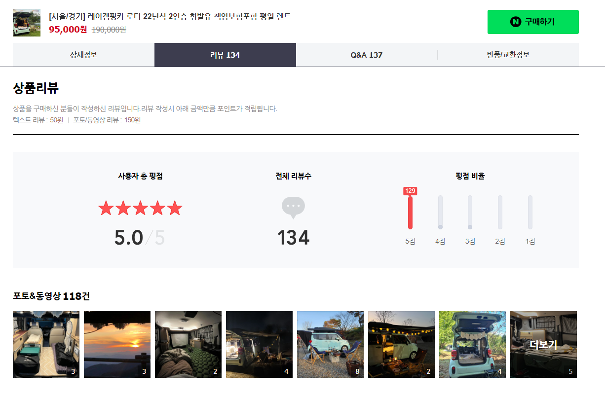 레이 캠핑카 리뷰 확인하러 바로 가기 클릭