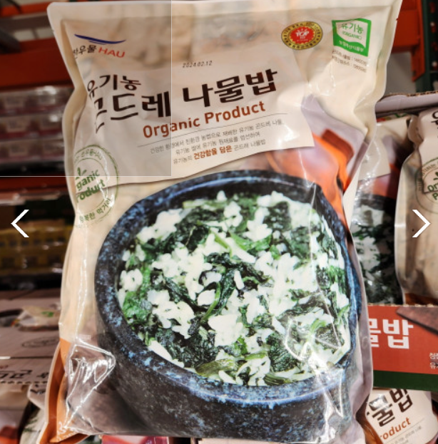 일곱번째로 코스트코에서 꼭 사야하는 추천템으로 제안드릴 상품은 한우물 유기농 곤드레 나물밥 입니다. 1팩 안에 5개가 들어 있습니다. 볶아 먹어도 되고 전자레인지에 돌리기만 해서 먹어도 되는 간편한 밥입니다. 데운 밥 위에 함께 들어있는 양념장을 비벼 먹으면 한끼를 든든하고 간단하게 해결하실 수 있습니다.