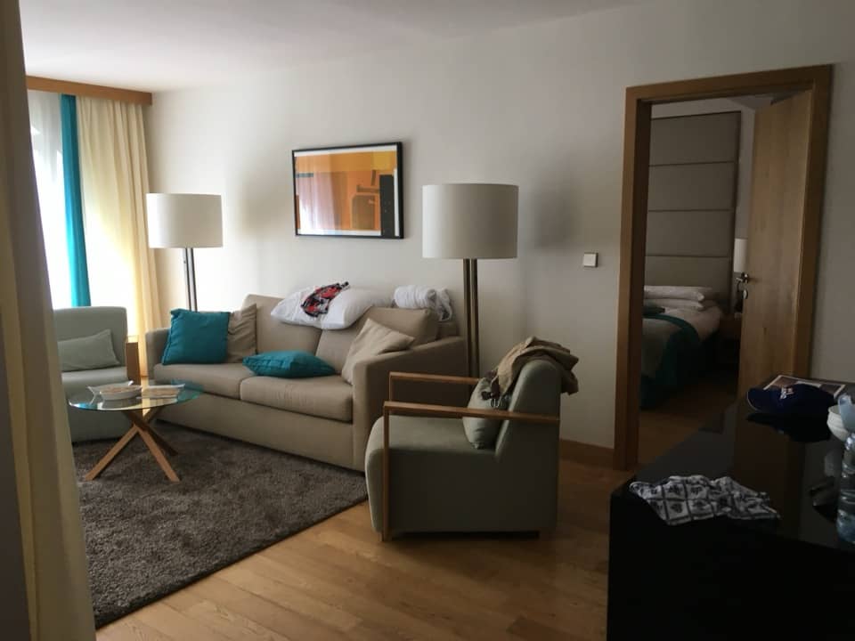 4인 가족으로 2베드룸과 3개의 화장실이 있는 2 베드룸 레지던스 정원전망이 객실을 이용하였습니다. 처음 예약할 때는 1 베드룸 레지던스로 예약하였습니다. 왜냐하면 침실에 더블베드 한 개와 거실의 소파 베드 한 개가 있어서 4인 가족이 사용하기에 충분하다고 생각했기 때문입니다.